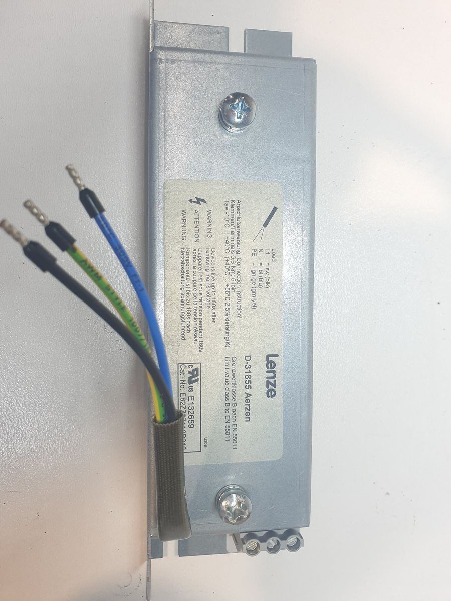The product is a high-quality RFI (Radio Frequency Interference) filter designed to suppress electrical noise and improve electromagnetic compatibility in industrial automation systems. This model is engineered as a dedicated accessory for Lenze 8200 Vector frequency inverters, ensuring clean power input and reliable performance by reducing conducted interference on the mains supply. With a 240 VAC rating and 5 A current capacity, it provides stable filtering for small to mid-range drives used in machinery, conveyors, pumps, and general motion control applications.