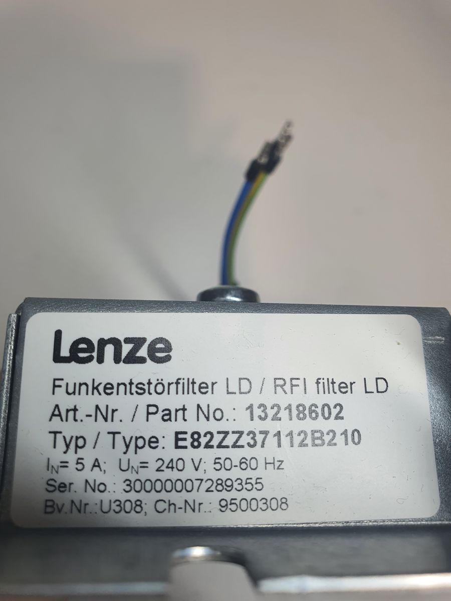 The product is a high-quality RFI (Radio Frequency Interference) filter designed to suppress electrical noise and improve electromagnetic compatibility in industrial automation systems. This model is engineered as a dedicated accessory for Lenze 8200 Vector frequency inverters, ensuring clean power input and reliable performance by reducing conducted interference on the mains supply. With a 240 VAC rating and 5 A current capacity, it provides stable filtering for small to mid-range drives used in machinery, conveyors, pumps, and general motion control applications.