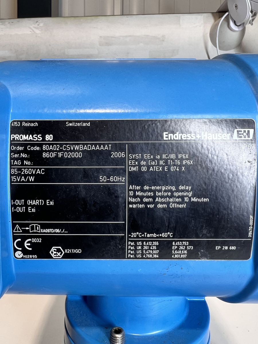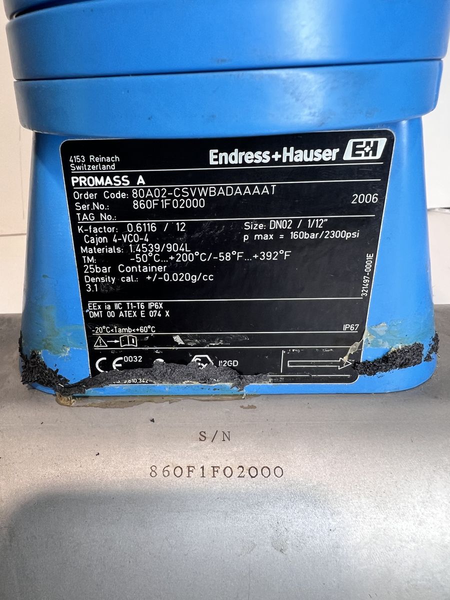 Endress+Hauser Promass 80 / 80A (Order Code 80A02-CSVWBADAAAAT)