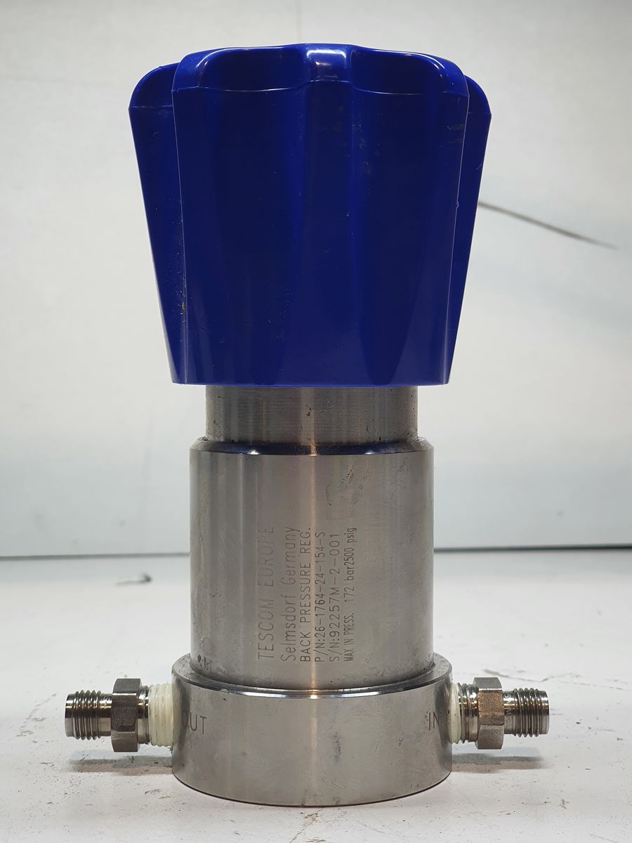 A precision pressure regulator designed to control and stabilize gas or fluid pressure downstream from a high-pressure source. Tescom regulators are commonly used in industrial process control, instrumentation, testing systems, and fluid power applications where accurate pressure regulation is required.